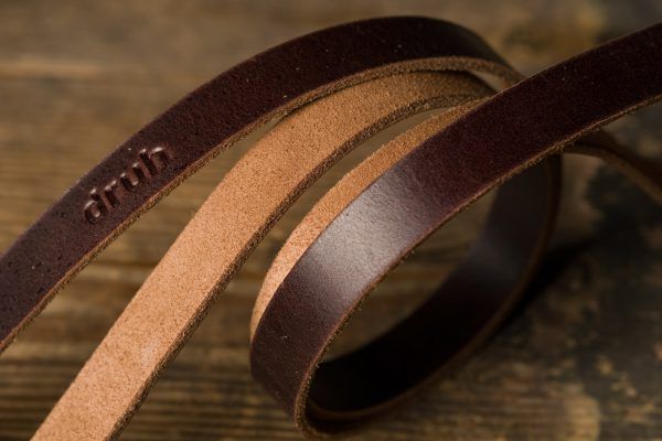 Pasek do aparatu wykonany z materiałów naturalnych: włoska skóra garbowana roślinnie 2 mm grubości o szerokości 14 mm